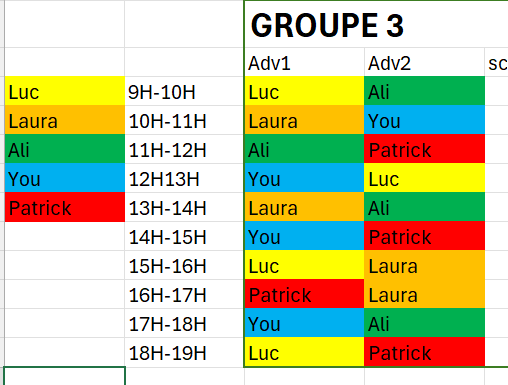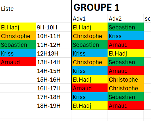 Vous trouverez ci-jointes les compositions des 4 poules pour le prochain tournoi primé ainsi que les heures de convocations notamment pour le démarrage.